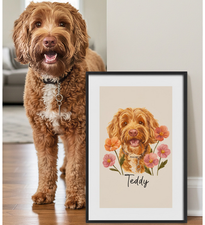 Custom Pet Portrait Poster - Floral Painting Style