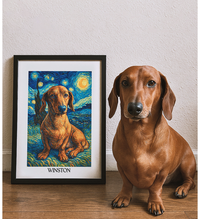 Custom Pet Portrait Poster - Van Gogh Painting Style - Vertical